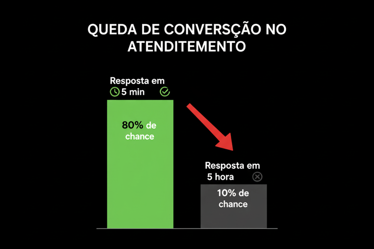 Estudos de conversão mostram que se você não responde um lead nos primeiros 5 minutos, a chance de qualificar esse contato cai em 400%. Após uma hora, ele provavelmente já esqueceu quem é você ou, pior, já fechou com o seu concorrente que foi mais rápido no gatilho.